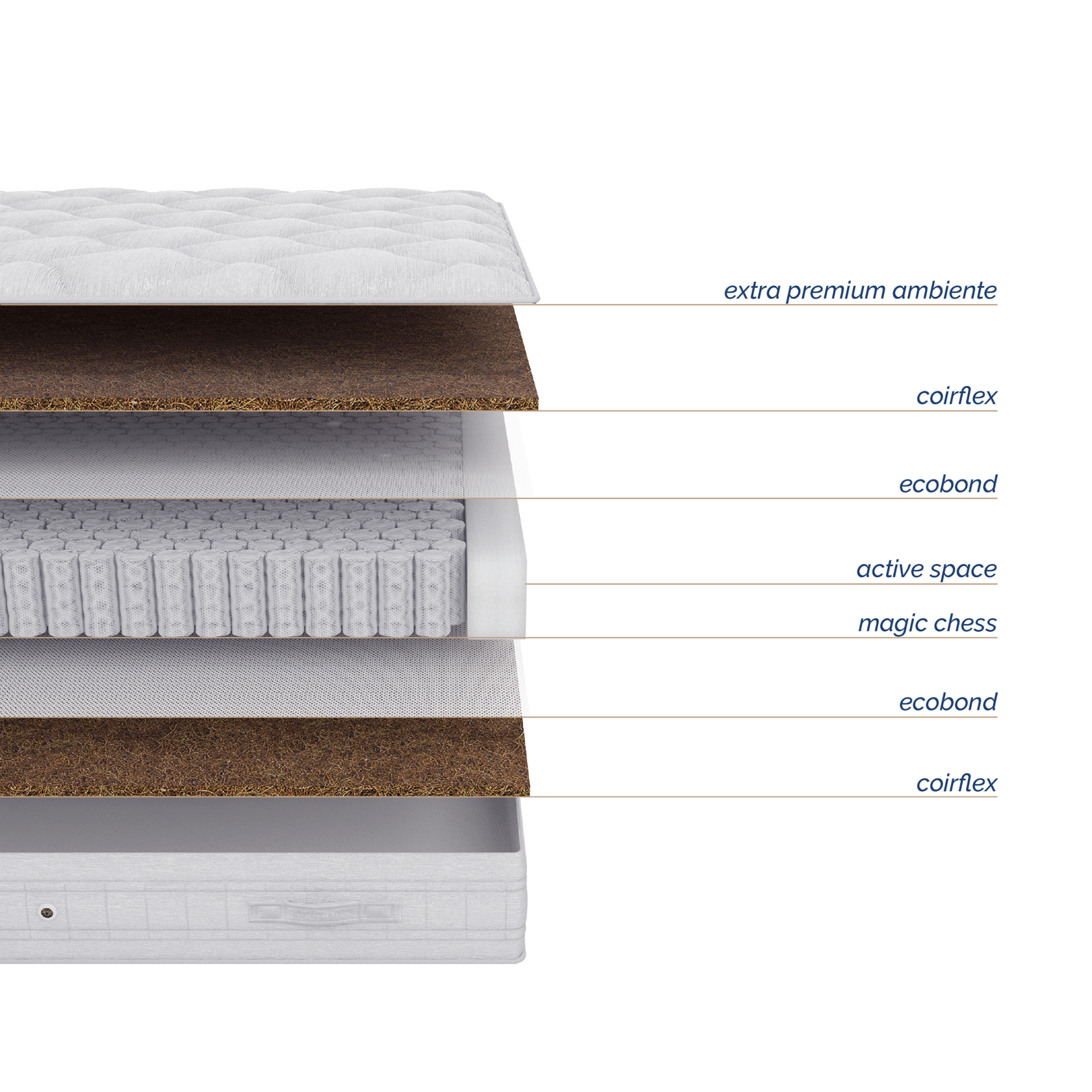 Coirflex - комфортный слой из натуральной кокосовой койры, пропитанный натуральным латексом (50% волокно кокосового ореха, 50% латекса). Гибкий и упругий, обладает ортопедическим эффектом и устойчив к нагрузкам. Придаёт жесткость матрасу.