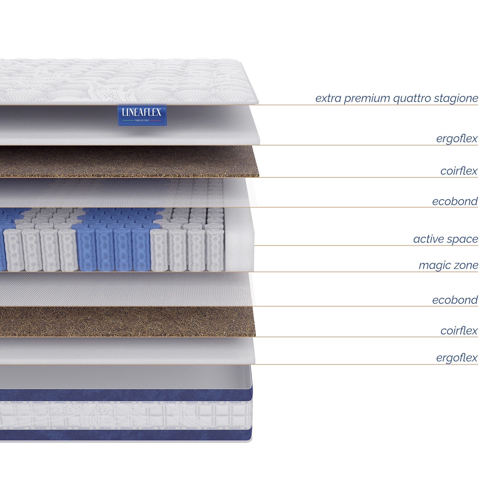 Чехол Extra Premium Quattro Stagioni (4 сезона) - мягкий и пышный чехол за счёт экологичного наполнителя Skyfiber и анатомической пены Ergoflex Touch в своём составе.