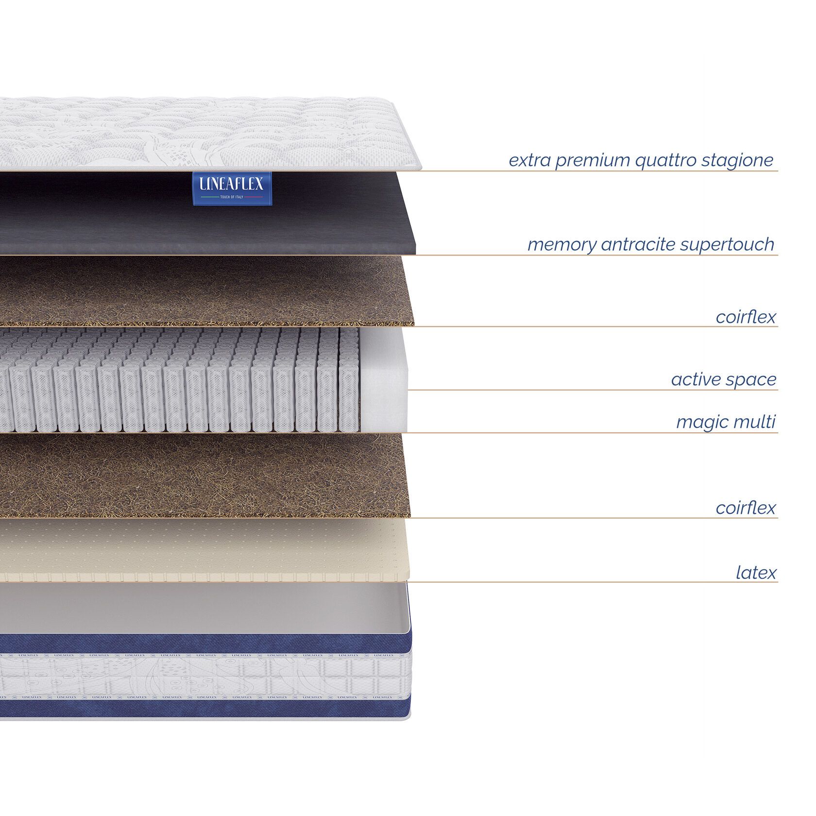 Memory Antracite Supertouch – сверхэластичная пена, которая запоминает и повторяет форму тела с точностью до миллиметра. Полностью гипоаллергенна, и эффективно отводит влагу, потому что содержит частички угля антрацита. Гасит толчки и вибрации, не оказывает ответного давления на мышцы и суставы, способствует свободному кровообращению и насыщению клеток кислородом.