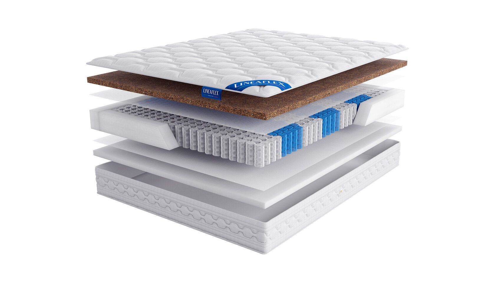 Coirflex – комфортный слой из натуральной кокосовой койры, пропитанный натуральным латексом (50% волокно кокосового ореха, 50% латекса). Гибкий и упругий, обладает ортопедическим эффектом и устойчив к нагрузкам. Придаёт жесткость матрасу.