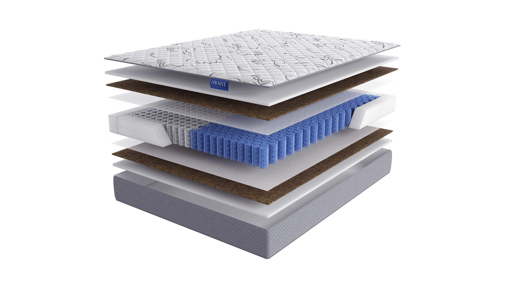Coirflex – комфортный слой из натуральной кокосовой койры, пропитанный натуральным латексом (50% волокно кокосового ореха, 50% латекса). Гибкий и упругий, обладает ортопедическим эффектом и устойчив к нагрузкам. Придаёт жесткость матрасу. -